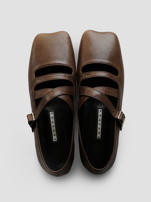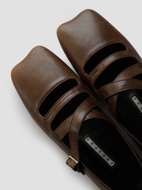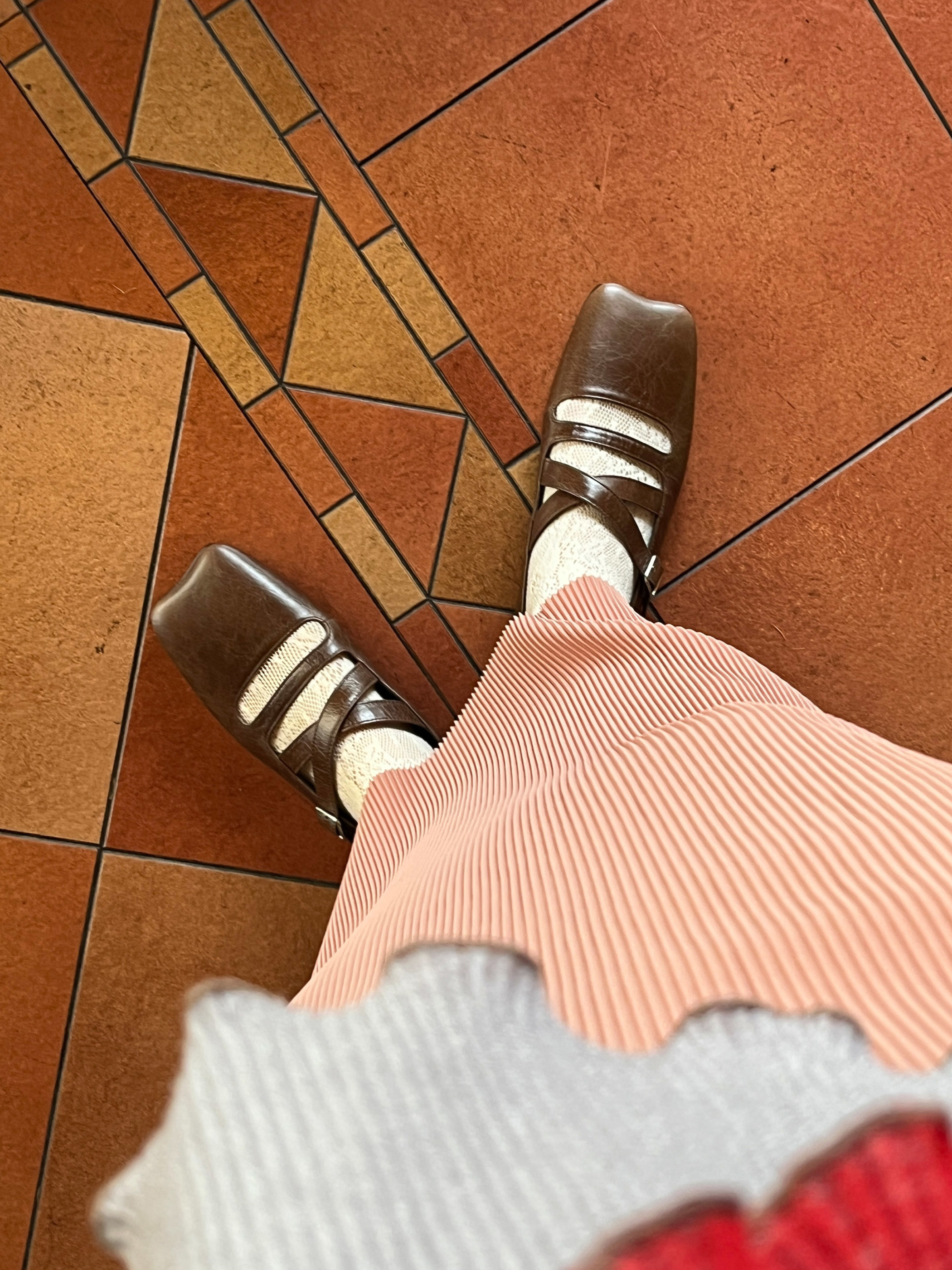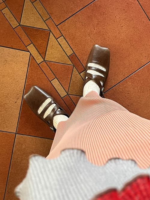 牛革のナチュラルな表情を活かした風合いにより、ガーリーな印象になりすぎずモードに装えるストラップシューズです。